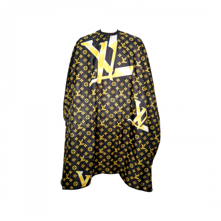 As Capas para Barbeiro LMPRO foram desenvolvidas para profissionais que buscam unir funcionalidade, resistência e identidade visual forte no ambiente de trabalho. Com estampas marcantes e acabamento profissional, contribuem para uma apresentação mais moderna e organizada durante o atendimento. Este modelo apresenta uma estampa luxuosa inspirada na grife Louis Vuitton, com o monograma clássico em dourado sobre fundo preto e logotipos amplos em destaque.