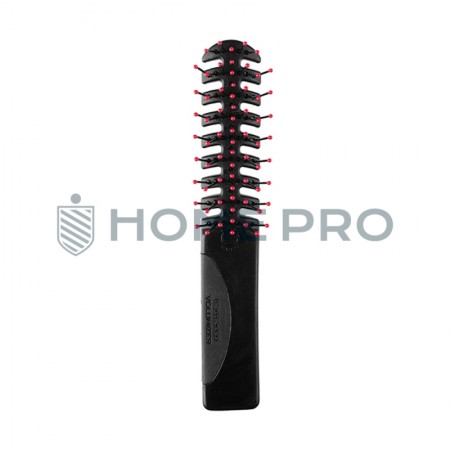 O modelo 5821 (Volumizer) destaca-se pelo seu corpo de grande formato com um padrão de ventilação estendido que maximiza a passagem do ar, otimizando o tempo de exposição ao calor. Suas cerdas mistas estrategicamente posicionadas combinam a firmeza necessária para levantar o cabelo desde a base com a suavidade requerida para polir a cutícula. Fabricada em polímero de alta resistência térmica, sua construção ergonômica e leve reduz a tensão no pulso, permitindo uma estilização dinâmica e precisa.