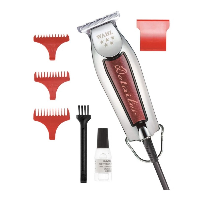 Pequeno, mas poderoso. Aparador profissional com cabo fabricado nos Estados Unidos. Leve e ergonômica, oferece o equilíbrio e controle profissional perfeito para o trabalho da mais alta qualidade. As lâminas "T" que se encaixam no corte "0" são ideais para trabalhos precisos e detalhes perfeitos. As máquinas Wahl, projetadas com os mais altos padrões de qualidade, oferecem segurança de alto desempenho, sem objeções. Motor potente para trabalhos precisos com baixa vibração Lâminas de aço da mais alta qualidade para corte de cabelo Motor de alta potência Extremamente leve e prático Cabeça de corte de cromo de precisão. 1 pente guia de 1/2 mm; 3mm e 4 1 / 2mm
