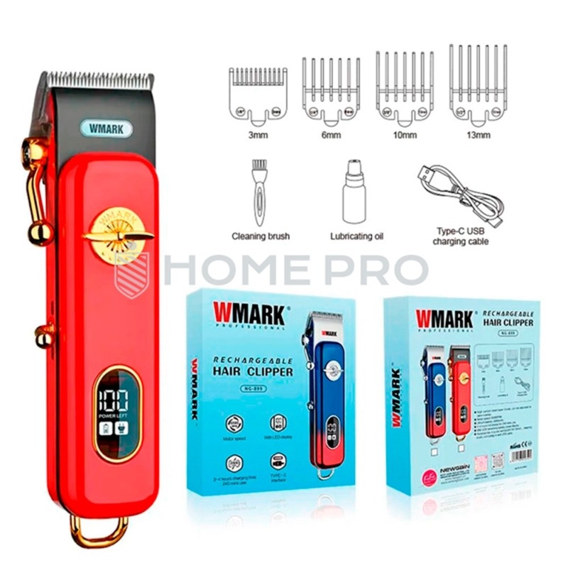- Acessórios: 4 pentes guia (3/6/10/13 mm), escova de limpeza e cabo USB.