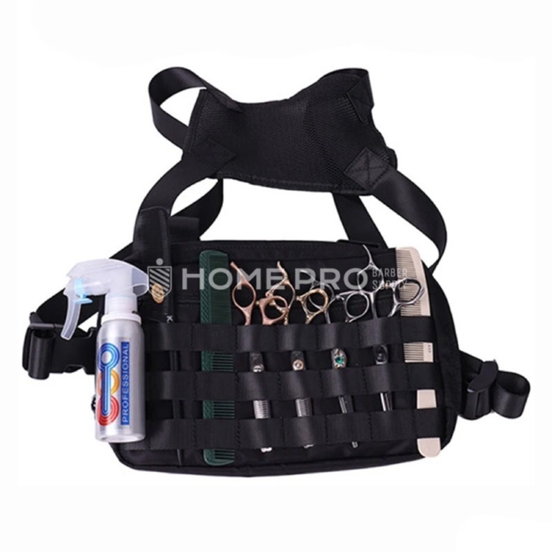 • Colete de armazenamento de ferramentas de barbeiro profissional.
