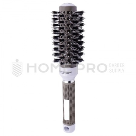 El modelo 28783 es un cepillo de 32 mm que integra cerdas mixtas de nylon y naturales, diseñadas para sujetar el cabello con firmeza mientras distribuyen los aceites naturales para un brillo máximo. Su barril con tecnología Nano Technology Ceramic + Ionic calienta de forma uniforme y emite iones que eliminan el frizz. Presenta un mango ergonómico con textura antideslizante de corazones/panal y un diseño ventilado que acelera el secado.