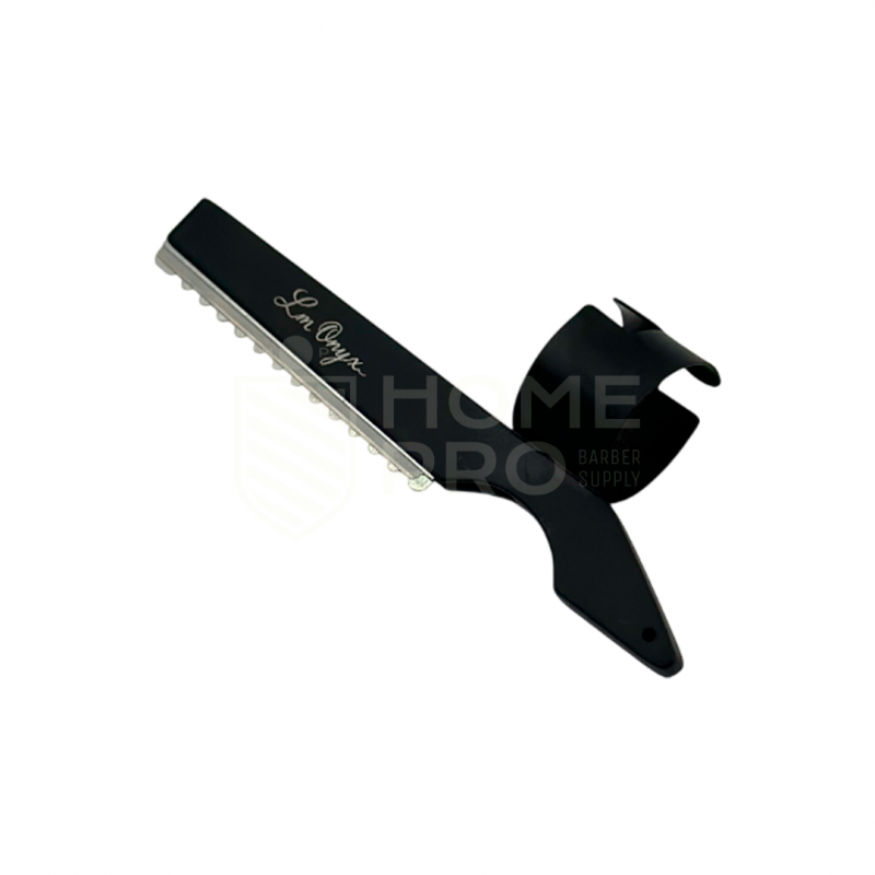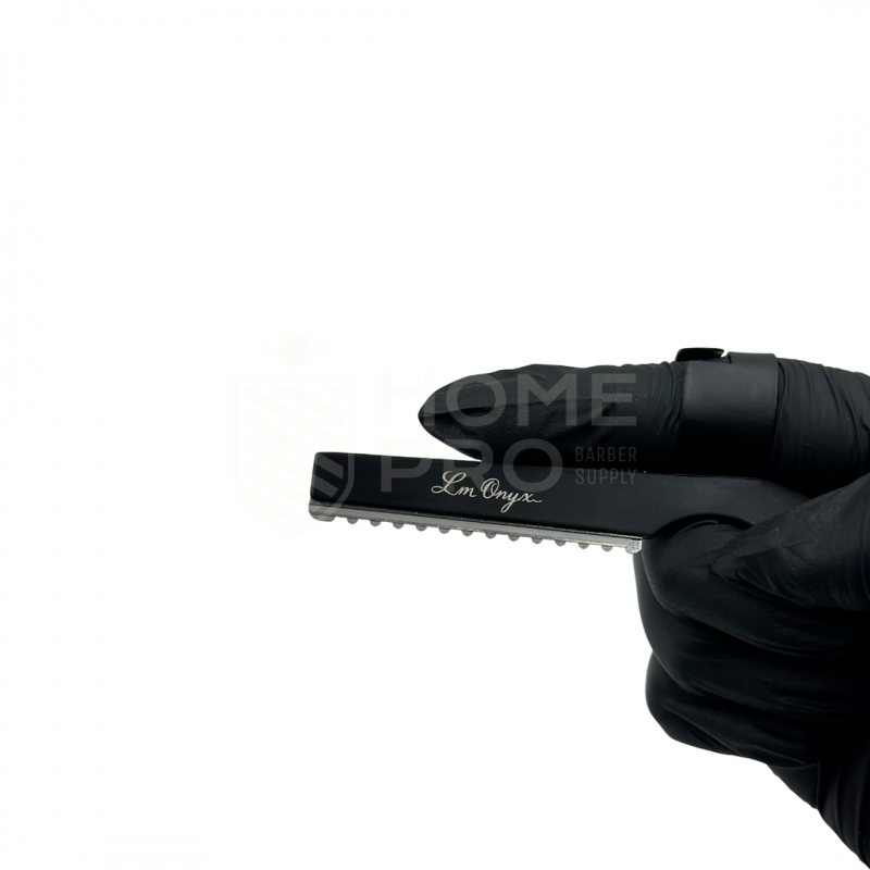 Su diseño ergonómico y ajustable rodea el dedo de forma cómoda y segura, garantizando un dominio absoluto de los movimientos durante el uso. Equipada con una hoja fina de alta calidad, la LM ONYX permite el desbaste dirigido en áreas específicas —como flequillo, línea del cabello y secciones en capas— proporcionando transiciones suaves y cortes intrincados con facilidad.